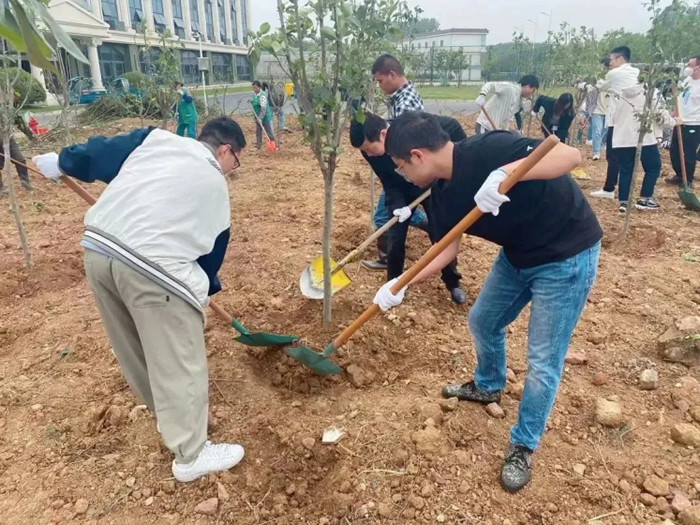 除土球布條、挖坑、扶樹、填土、檢查調(diào)整......紙上得來終覺淺,覺知此事要躬行??油诘没蛱罨蛱珳\,埋樹根時(shí)或太松或太實(shí),凡此種種細(xì)節(jié),都會影響樹苗成活率,大家也虛心聽從綠化師傅們的意見,耐心調(diào)整,并很快得心應(yīng)手起來。