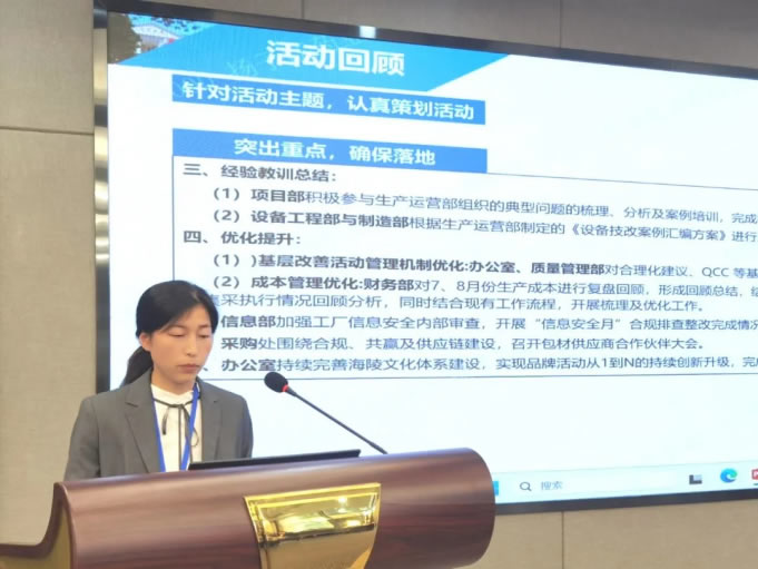 馮部長對第三十六次“質(zhì)量月”活動進(jìn)行總結(jié)發(fā)言。圍繞本次活動內(nèi)容、不足與改進(jìn)以及承上啟下內(nèi)容進(jìn)行展開:1)在總結(jié)中,她通過正反面案例展示活動期間各部門的亮點(diǎn)工作和不足;2)她強(qiáng)調(diào)要強(qiáng)化質(zhì)量月內(nèi)容與標(biāo)準(zhǔn)模板的解讀,保證材料輸出的質(zhì)量;3)最后,她針對質(zhì)量管理部制定的崗位“放心人”選拔方案進(jìn)行解讀,希望大生產(chǎn)系統(tǒng)各部門能夠選拔更多的放心人,挖掘新生力量,推動企業(yè)不斷成長。
