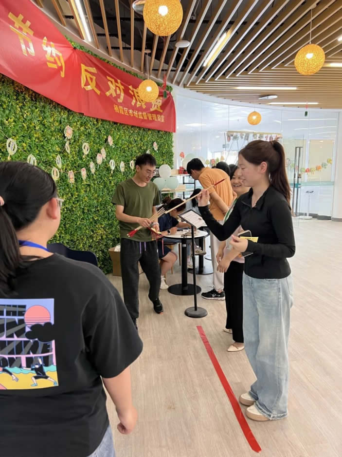 投壺也叫“射壺”,是古代士大夫在宴飲時所做的一種投擲游戲,是一種從容安詳、講究禮節(jié)的活動。投壺小秘訣:在投擲時,保持平衡,雙腳分開,身體重心向前,眼里和手感是重中之重。這個游戲可以鍛煉大家的動手能力和專注力,在投壺的同時也能培養(yǎng)大家的判斷力及準(zhǔn)確性,是一項充滿趣味和挑戰(zhàn)的游戲。萬萬沒想到我們員工中誕生的神射手就是一箭三聯(lián)的方練。