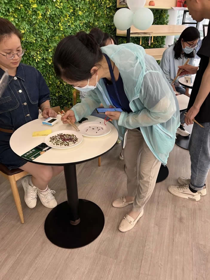 紅豆生南國,春來發(fā)幾枝。這蜜豆不是普通的蜜豆,是王維詩里面的蜜豆。夾蜜豆可是對手穩(wěn)有很高的要求的,打飯愛“手抖”的員工可要注意啦,手一抖將前功盡棄。夾蜜豆要領(lǐng):手穩(wěn)、氣平、心態(tài)好。大家還記得當(dāng)時自己夾了幾顆蜜豆嗎?而夾到最多蜜豆獲得蜜豆王稱號的就是收獲滿滿35枚小蜜豆的楊新悅。