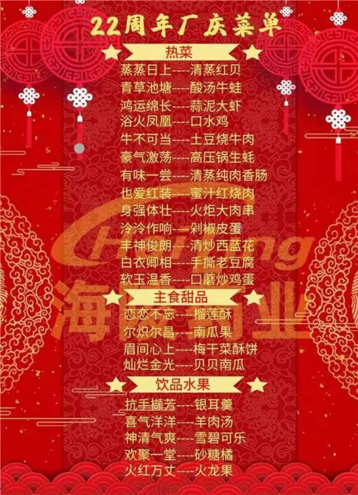 二十二年!是一道歷史印跡的長度!是揚(yáng)帆逐夢,轉(zhuǎn)型發(fā)展的高度!海陵食堂準(zhǔn)備了豐盛的廠慶自助餐活動(dòng),邀請大家一起共享這份喜悅,見證奮進(jìn)者的光芒~
